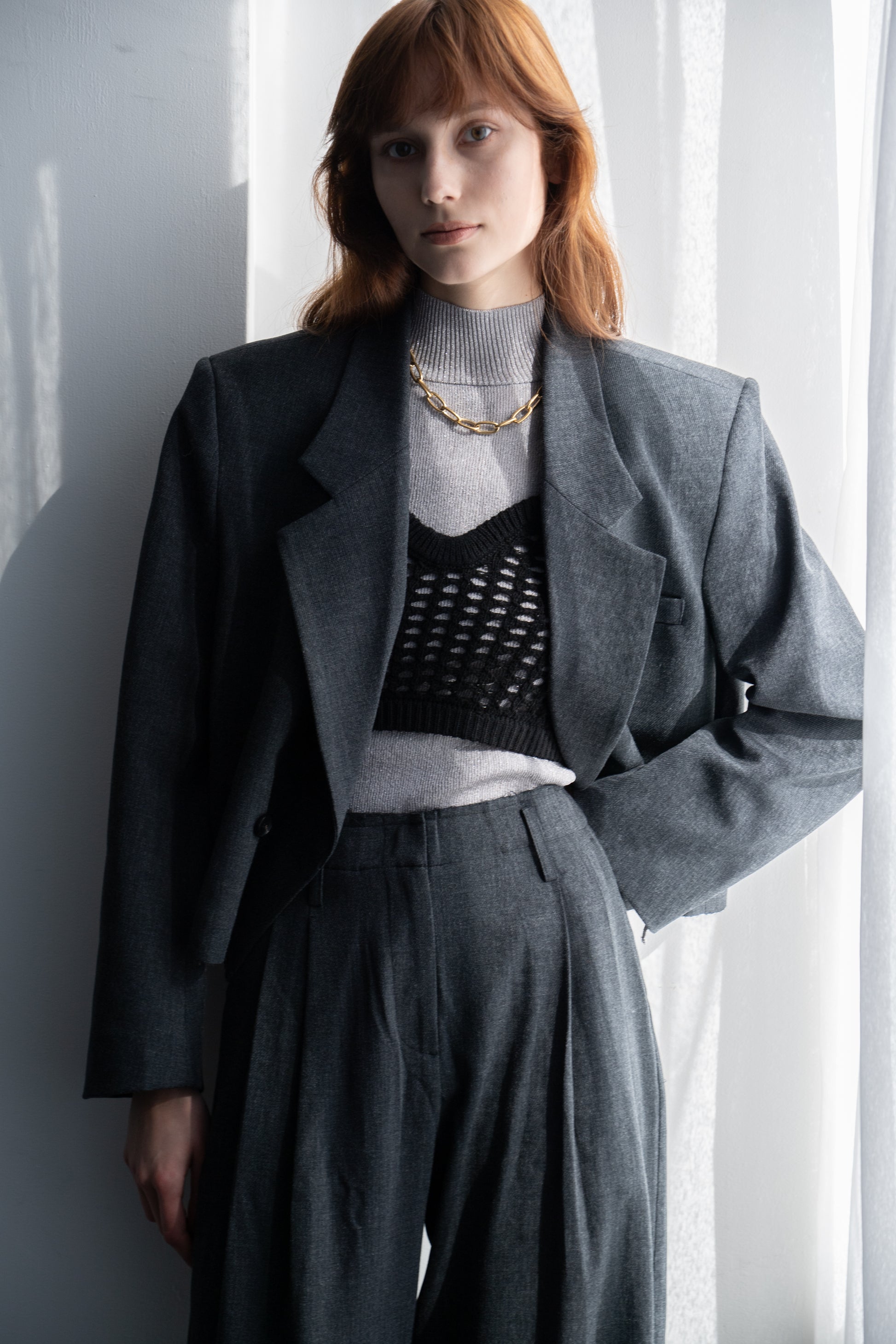 しっかり伸びるリブ組織なので着心地が良く、締め付け感のないニットとなります。春先まで使えるシアー感もあり、程よい透け感が春のインナーにピッタリ!